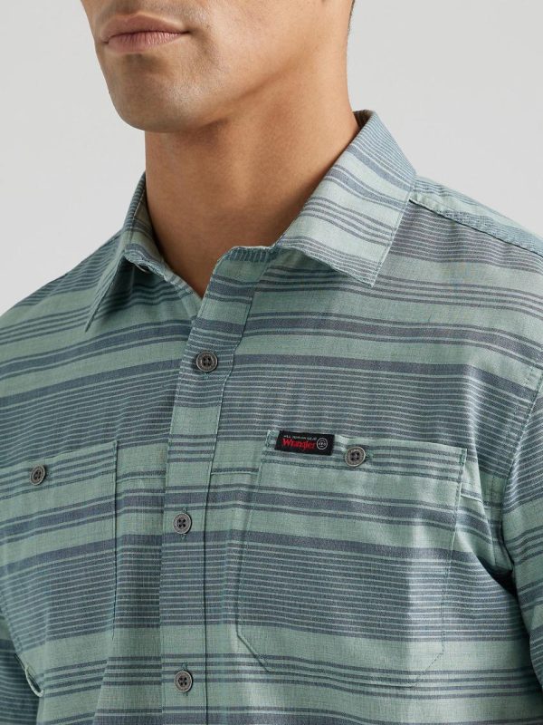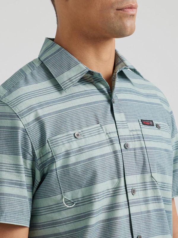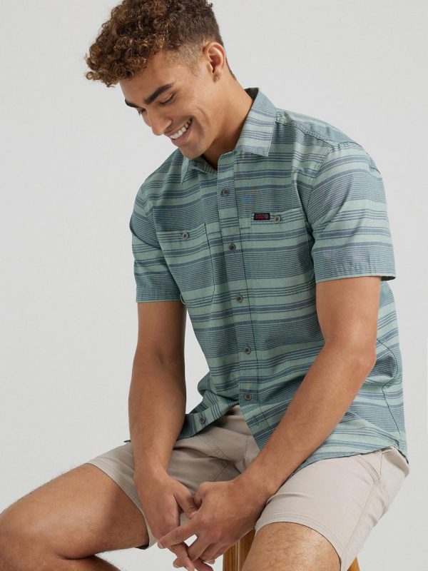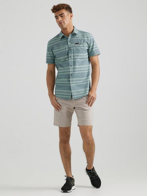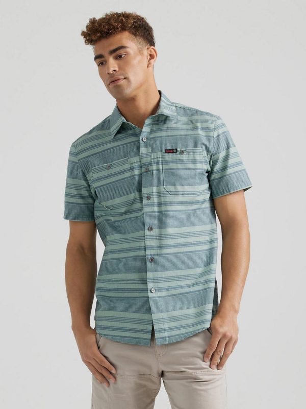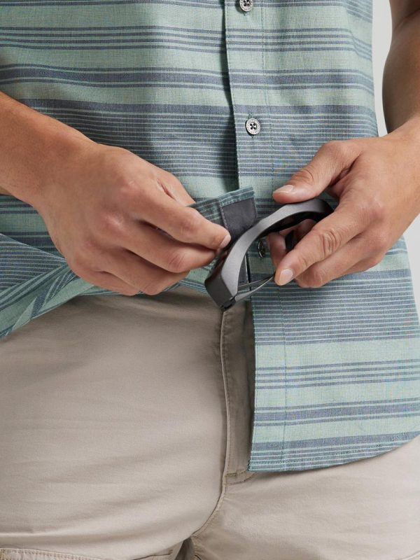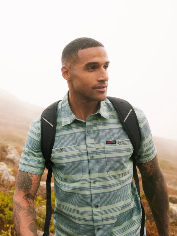 With the ATG by Wrangler® men’s breeze shirt on your back, you can take on every adventure that comes your way. It’s crafted from 100% cotton that’s moisture-wicking to keep you cool, dry, and comfortable. It’s dyed with GiDelave, using 98% less water and 50% less energy in the dyeing than conventional package dyeing. This short-sleeve collared shirt also features UV protection to shield you from the sun’s harmful rays and a vented back yoke for better breathability. Its regular fit feels perfectly loose through the shoulders and arms. You’ll have two chest pockets and a utility loop for your essentials, plus an integrated glasses cleaner so you always stay smudge-free.