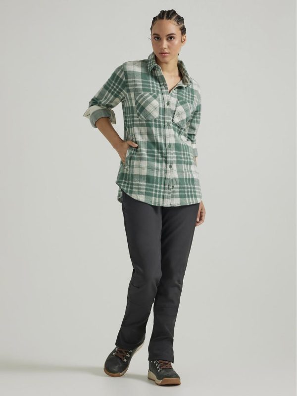 Stylish yet practical for adventures in the great outdoors, the ATG by Wrangler™ women’s campsite knit tunic strikes the perfect balance. It features a longer silhouette in true tunic style and it’s crafted from a comfy performance blend with just a subtle amount of stretch to keep you in your element. This long-sleeve knit top comes with the added benefits of UPF 40 and a moisture-wicking finish that keeps you dry no matter what the day has in store. Plus, there’s plenty of space for your essentials between the two chest patch pockets and the two slip-in hand pockets. Downtown or off the grid, this tunic looks great whether you’re wearing jeans, leggings, or cargo pants. You really can’t go wrong.