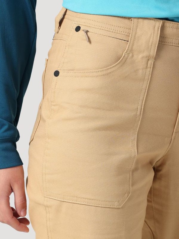 We’re all greater outdoors—get the gear that keeps you feeling your best in every outdoor setting with the ATG™ by Wrangler® women’s collection. The ATG women’s canvas pant is designed with function-first outdoor features for a style that prioritizes comfort and keeps you focused on the adventure that lies ahead. The pants are equipped with a comfortable mid rise with higher back for coverage during movement. The sleek slim leg opening, rugged canvas construction, and a touch of stretch keep you moving freely. Oversized utility hip pockets, moisture-wicking properties, UPF 50 sun protection, and a crotch gusset that allows for maximum mobility ensure plenty of function to keep you feeling your best in the great outdoors.