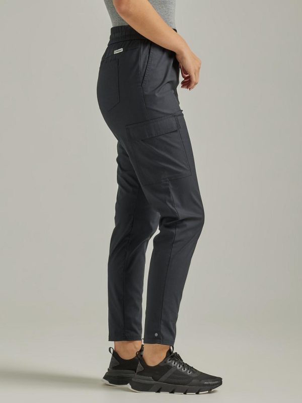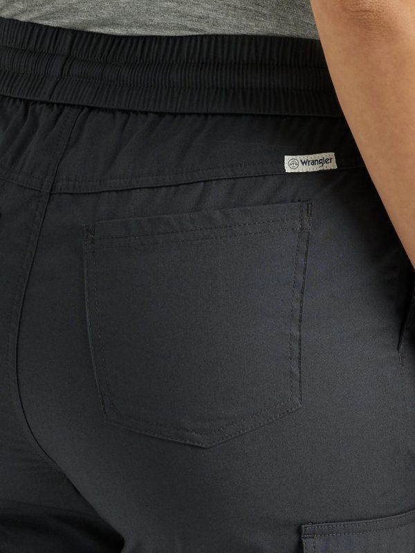 Combining the look of your favorite joggers with the convenience of a classic cargo pant, the ATG by Wrangler™ women’s cargo jogger will instantly become your go-to for venturing into the great outdoors. These versatile pull-on pants come with an elasticized waist and an internal drawcord to help you find the perfect fit. They feature a slim fit through the thigh and a tapered leg for a modern look that works on the trail and the city. These joggers come with UPF 40 to shield you from the sun and a moisture-wicking finish ensures you stay dry no matter what the weather has in store. Plus, you’ll have plenty of space for any essentials you want to take along between the back pockets, lower pockets, and side cargo pockets.