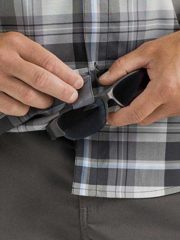 regular fit that’s not too tight or too loose, a vented back for better breathability, UPF to shield you from the sun’s harmful rays, and a moisture-wicking finish to keep you dry. Plus, the chest pocket and glass-cleaning patch make sure you and your essentials are ready to go.