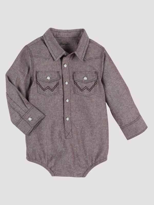He’ll fit right in with the professional cowboys wearing our Baby Boy’s Cowboy Cut® Long Sleeve Western Snap Bodysuit. It comes with all the tried-and-true details, including two chest pockets with the signature “W”embroidery, a partial pearl snap closure, and a pointed yoke. This outfit is crafted from 100% cotton for nonstop comfort and easy care.