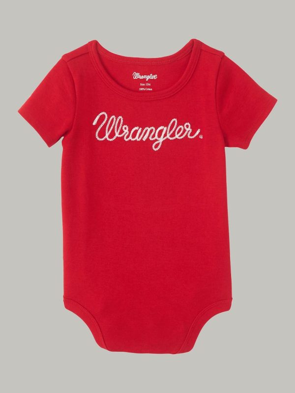 Wrap your little one in the charm of the West with our Baby Girl’s Wrangler® Rope Logo Bodysuit. Crafted from soft 100% premium cotton, this bodysuit was designed to keep her comfy and looking cute all day. Featuring a playful rope logo that nods to our Western heritage and snaps for easy changes, this is the perfect one-piece for your cowgirl in training.
