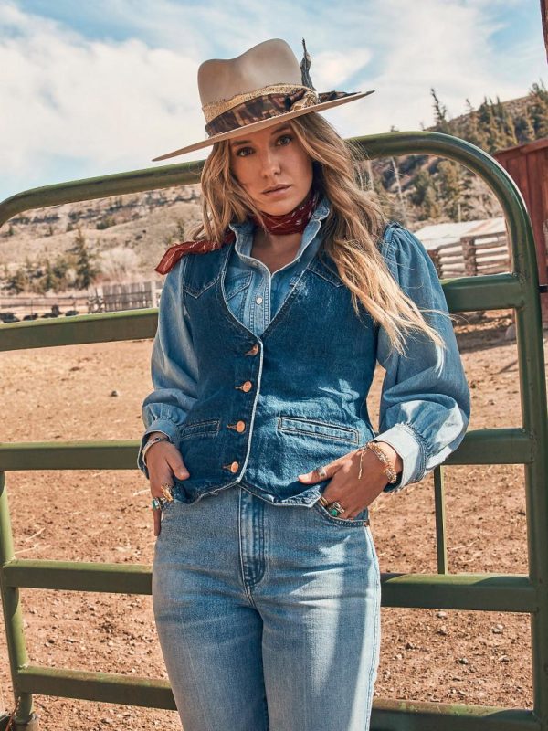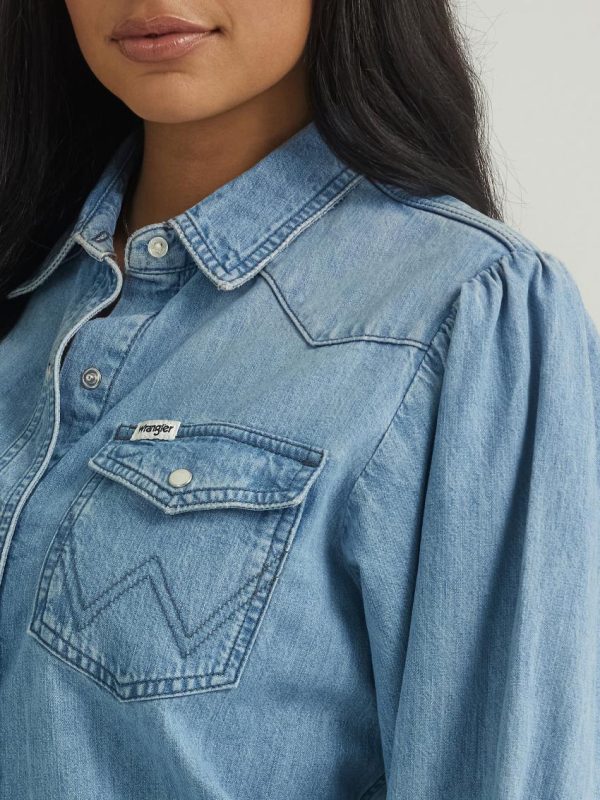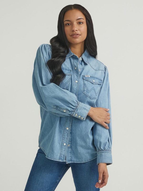This season, your favorite Western shirt is wearing its heart on its sleeve. With classic elements including a set of pointed yokes, two U-shaped pockets, and pearled buttons down the front mixed with a set of billowing sleeves, for a modern take on a classic look. Sticking with 100% cotton and drawing in at the waist with a slim fit, this comfortable button-down is a Western darling with a twist.