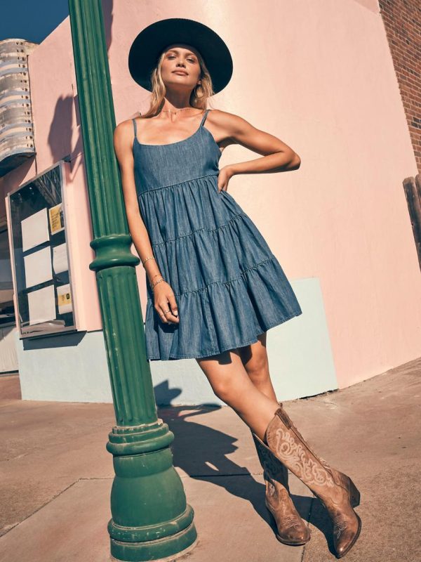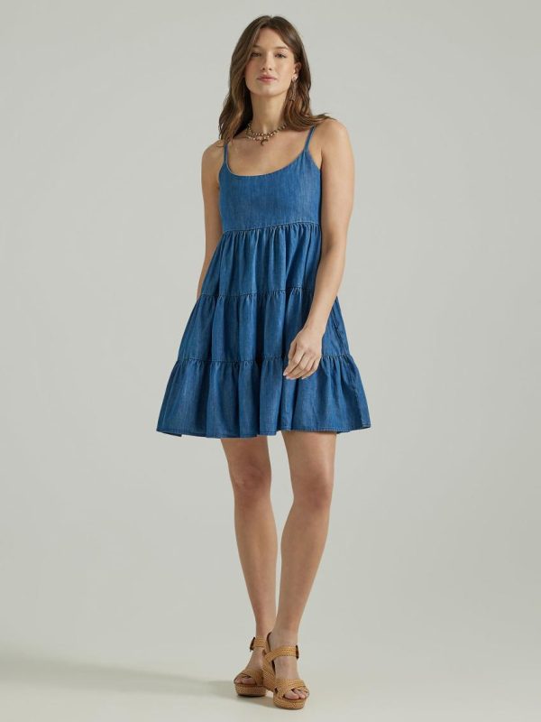 Once you wear the Women’s Wrangler Retro® Denim Strappy Tiered Dress, you won’t want to change into anything else. This lightweight denim dress is crafted from 100% cotton for an easy feel that only gets softer with time. It features a fitted bodice, a shirred back for flexibility, and a full, tiered skirt for extra volume. Best of all? Adjustable straps and pocket space.