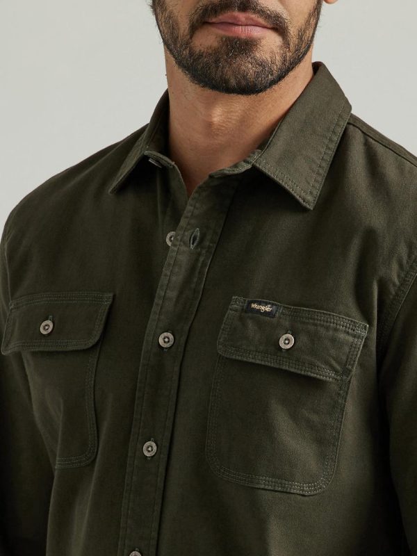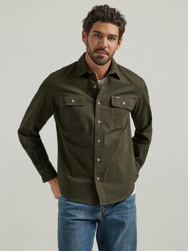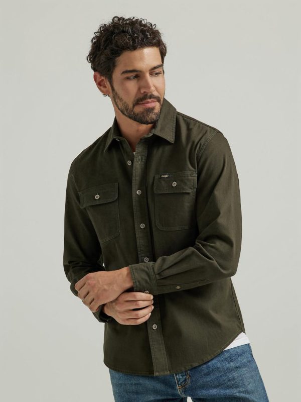 Classic style with a supremely soft upgrade. This Wrangler® men’s twill shirt is crafted with our Epic Soft™ fabrication for an unbeatably soft feel perfect for wearing in cool weather. The casual long-sleeve button-down shirt is made from a comfortable blend of cotton with just enough stretch to let you move without restrictions. It has two flap pockets at the chest with a button-through closure for a convenient place to store your phone or wallet. Wear the Epic Soft twill shirt over a graphic t-shirt for a casual fall style or button it up and layer it under your favorite sherpa styles to stay warm all winter long.