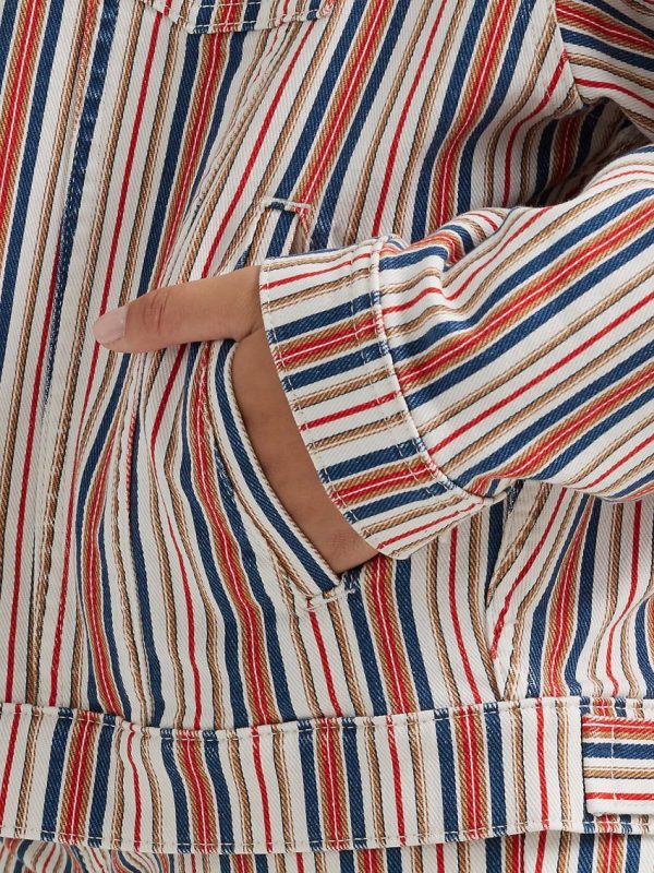 No closet is complete without a classic denim jacket. The Wrangler® Girlfriend fit is a familiar silhouette outfitted with plenty of features you’ll love. This jacket features a classic right-hand twill construction, authentic logo hardware, flap chest pockets, and ‘W’ stitching. It’s a casual staple perfect for pairing with every outfit no matter the season.