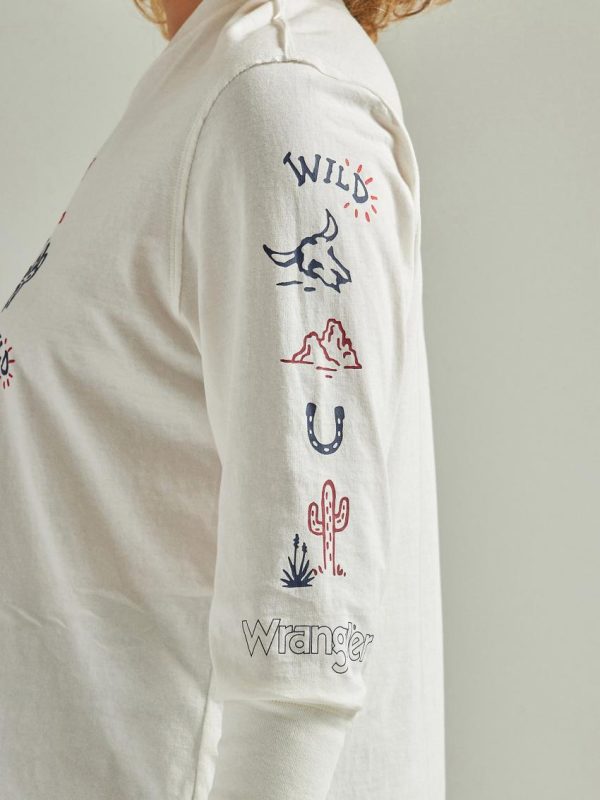 Perfect for casual days, our Women’s Wrangler Retro® Graphic Long Sleeve Relaxed Tee will add some Western spirit to your look. It’s crafted from 100% cotton jersey fabric for comfort and softness. This classic crewneck tee also comes with a colorful graphic print with the logo you know and love.