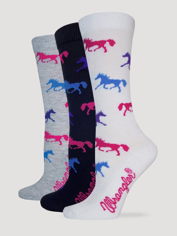 Horses Crew Socks (3-Pack) Multi | Women Wrangler Socks