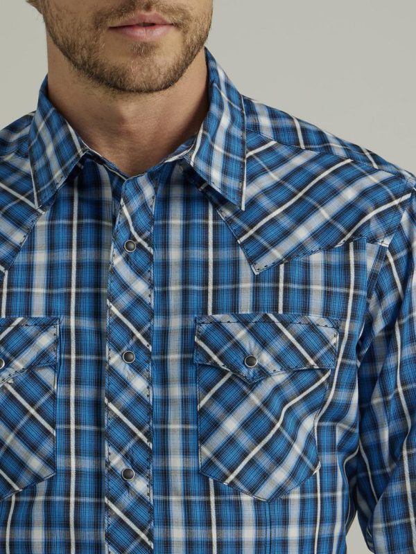Serving that classic Wrangler® style at its best, this men’s long-sleeve fashion western snap plaid shirt comes with all the distinctive details you know and love. It features rancher’s crease styling in the front, a pointed front yoke, a sawtooth-inspired back yoke, two snap cuffs, double snap flap pockets at the chest, and a curved hem for versatility. It’s made of cotton to keep you comfortable all year long and it features a modern fit. You can leave it untucked or tuck it into your favorite Wrangler jeans, with a t-shirt underneath if you feel like layering.