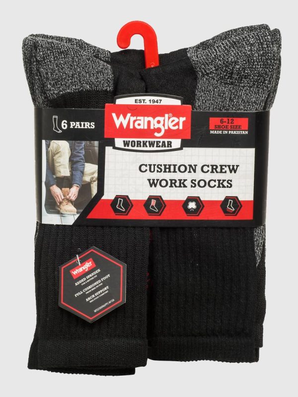Performance Crew Work Socks (6-Pack) Black | Men Wrangler Accessories