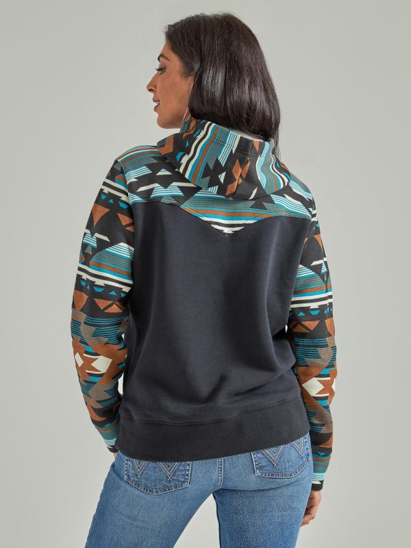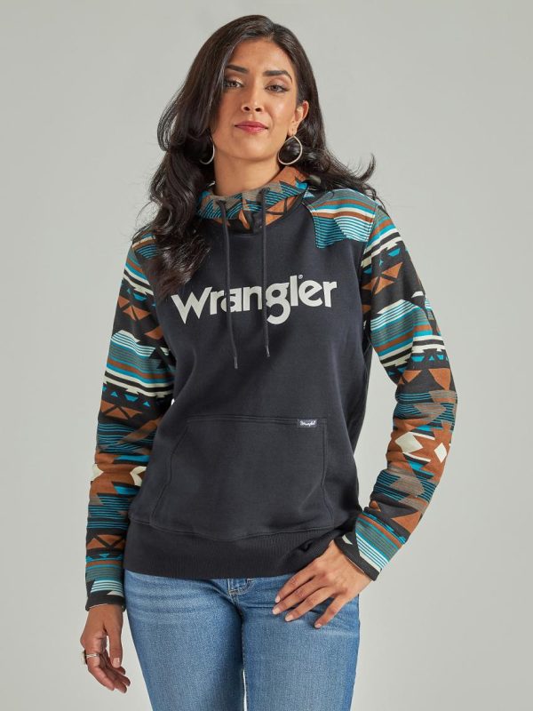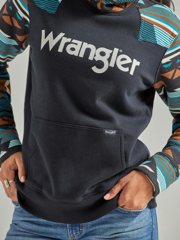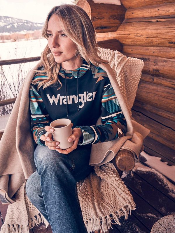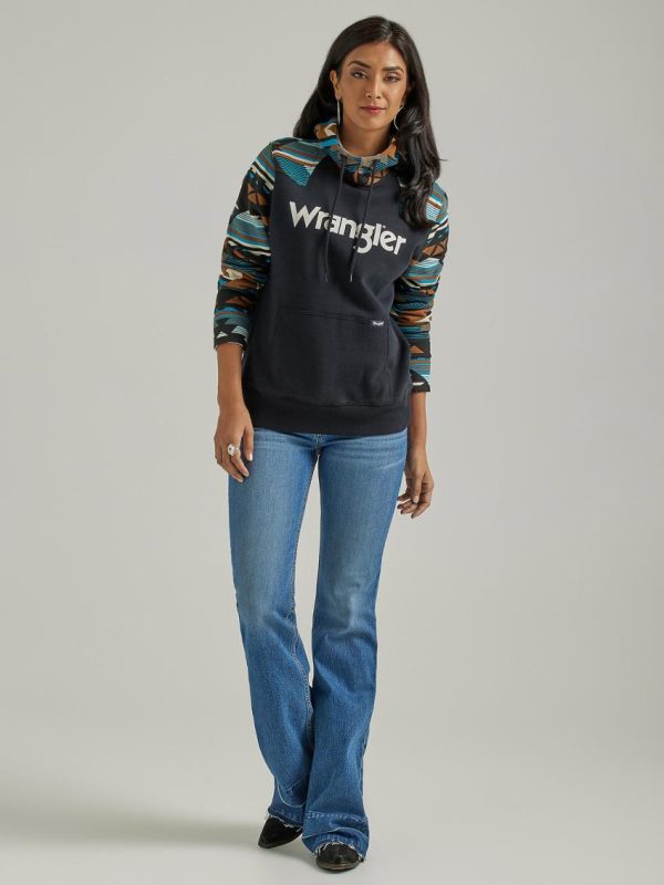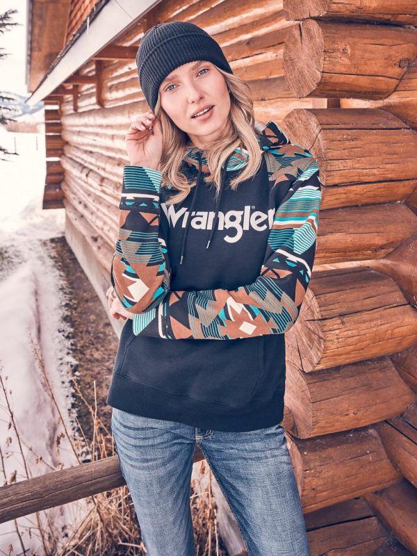 With cooler weather waiting on the horizon, a new layer can’t hurt. Luckily, the women’s Wrangler Retro® logo southwestern yoke pullover hoodie takes comfort to a whole new level without losing that classic western styling you love. It’s made of a super soft cotton blend that’s cozy enough to take you from one season to the next. It comes with the Wrangler® logo at the chest and a bold southwestern print along the shoulders, sleeves, and hood. Wear it with your favorite pair of Wrangler Retro jeans to complete the look.