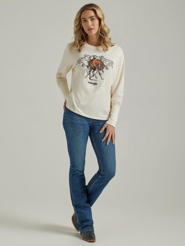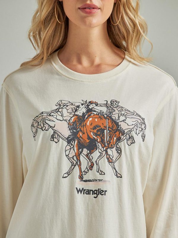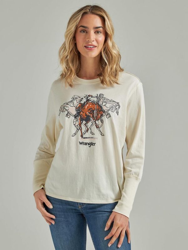 Retro® Long Sleeve Horse In Motion Tee White | Women Wrangler Tees & Tanks