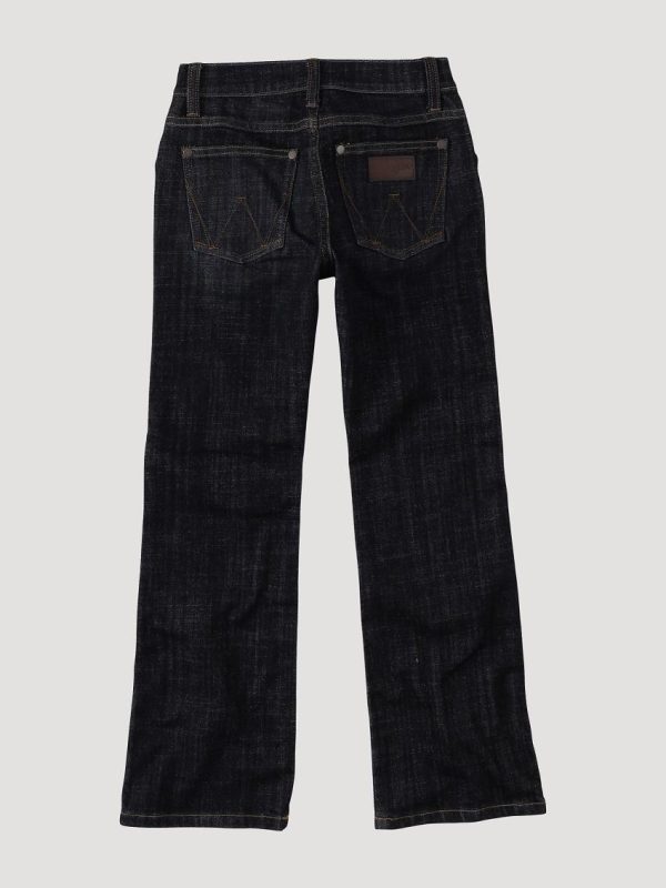 He’ll never want to wear another pair of jeans. Our Boy’s Wrangler Retro® Slim Boot Jean takes our classic Western styling with an adjust-to-fit waistband that grows with him. These bootcut jeans sit lower on the waist, fit slim through the thigh, and leave plenty of room for his boots. Plus, they’re crafted from cotton with just a hint of stretch for extra comfort.