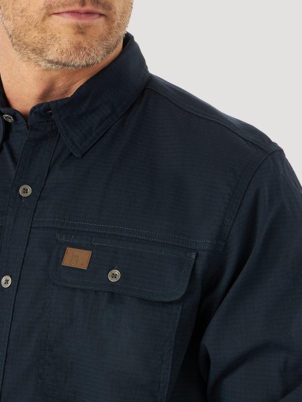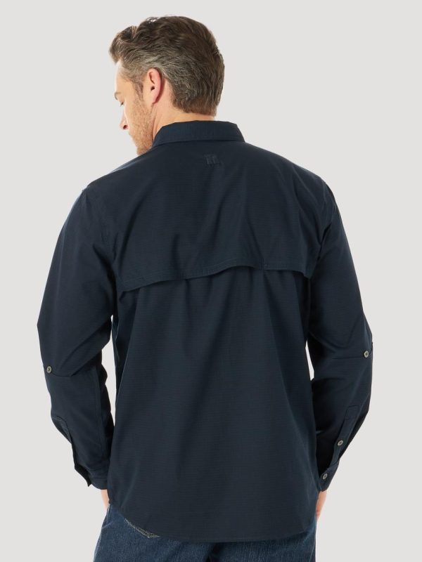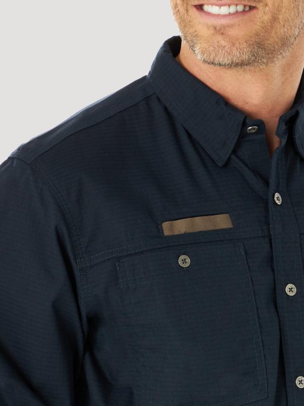 Nothing beats the classic look and familiar feel of men’s work shirts. From the Wrangler® RIGGS WORKWEAR® collection, this style is outfitted with all the features you need to get through every shift in comfort. The work shirt has a mesh-lined, vented back that allows for ventilation while its Weather Anything™ technology works overtime to regulate your temperature, keeping you comfortable no matter what the forecast has in store. It’s equipped with roll tab sleeves, two front patch pockets, a CORDURA® lined tool pocket, a pencil slot, and a hidden button-down collar. Its snap front closure makes it easy to layer over a lightweight t-shirt or winter thermal.