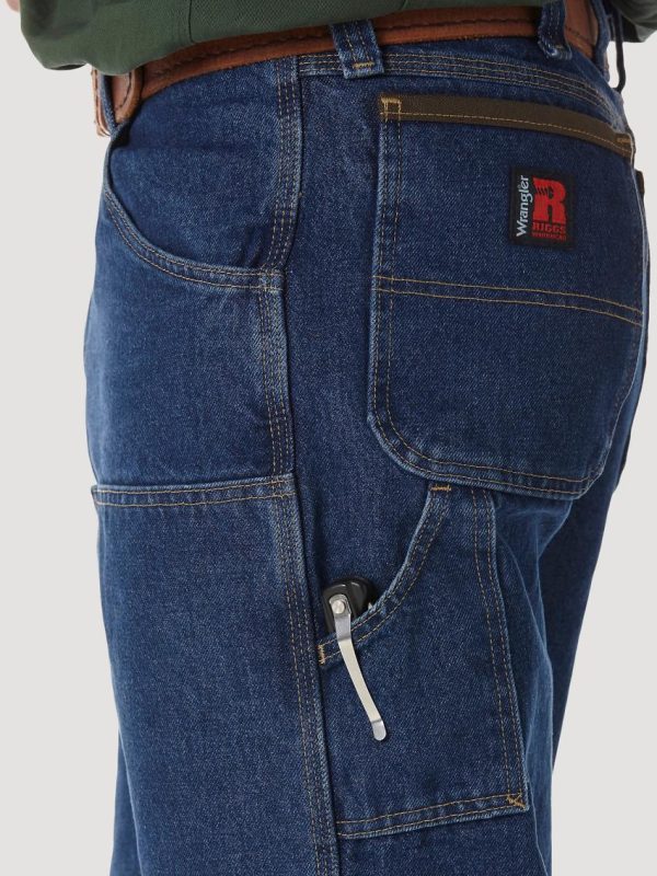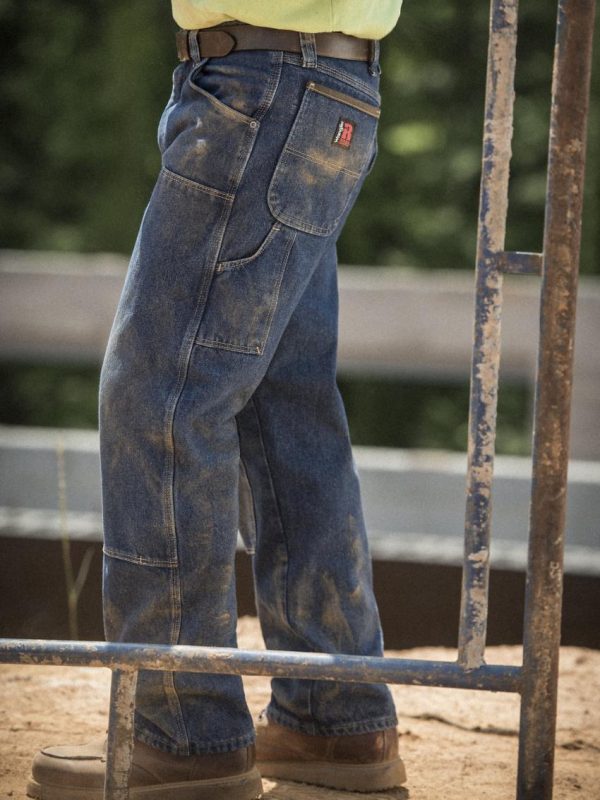 The RIGGS WORKWEAR® Utility jean features reinforced front panels for added durability, dirt drop out vents, suspender buttons, right side hammer loop and back pockets lined in 1000 Denier Cordura®. Constructed with our exclusive room2move™ fit and an action gusset for a better fit in the seat, thigh, knee and bottom leg opening.