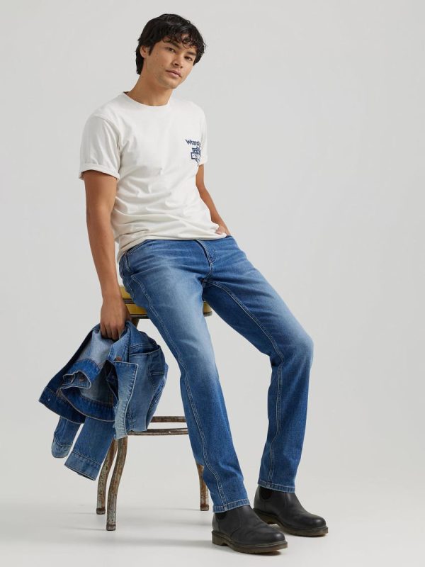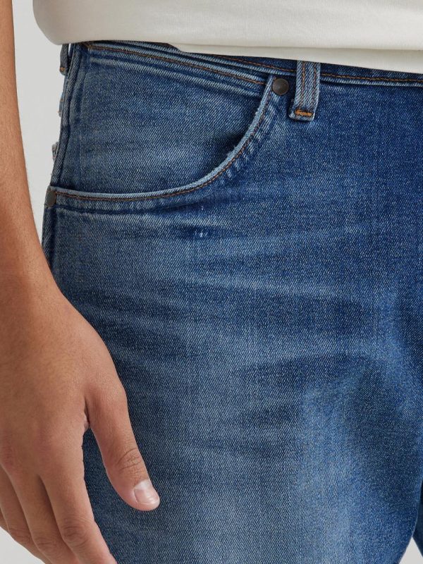 For guys on the move who don’t compromise on comfort or style, the Wrangler® Men’s River Jean is a modern essential that can’t be missed. Crafted from premium cotton with a hint of stretch, this all-day jean features a regular fit, mid-rise, tapered leg, and staples like our iconic five-pocket styling, a Wrangler logo patch, and branded hardware.