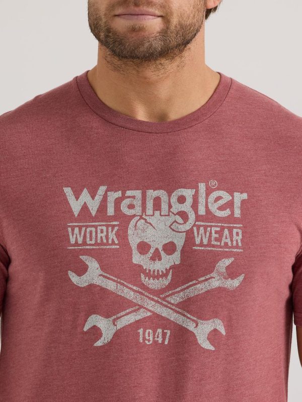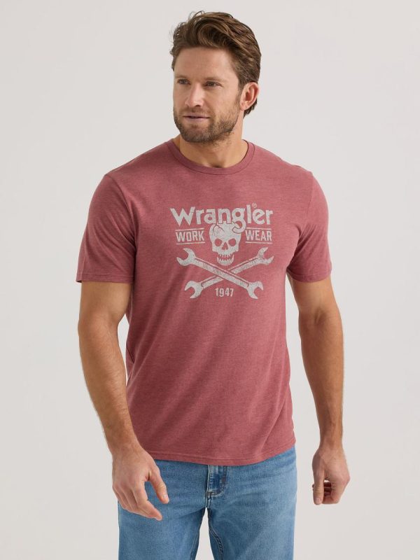 This men’s Wrangler® workwear graphic t-shirt is crafted from a lightweight cotton blend for year-round comfort. It features a unique screen-printed skull and wrench design. All you need is your favorite Wrangler work jeans and boots to be ready for whatever the day throws your way.