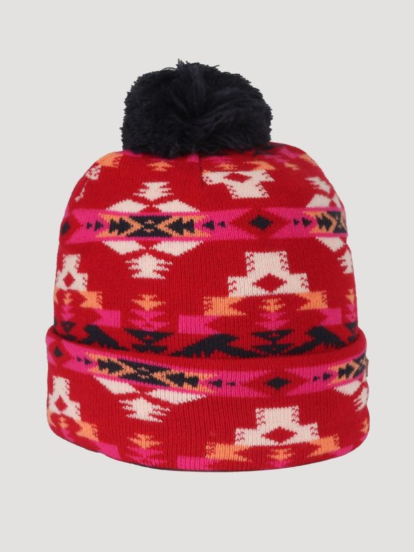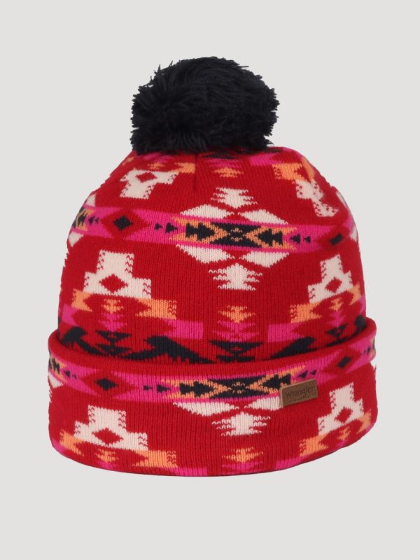 Southwest Print Pom Beanie Red | Women Wrangler Hats