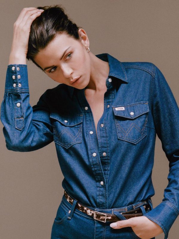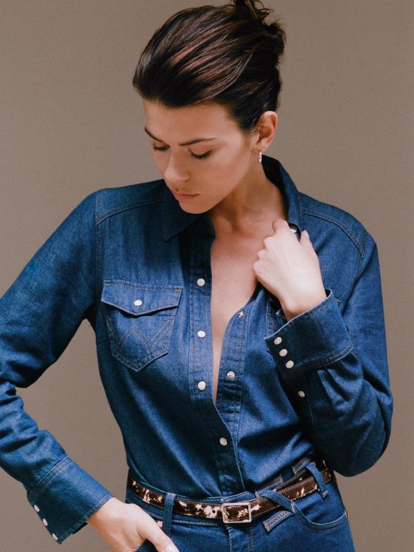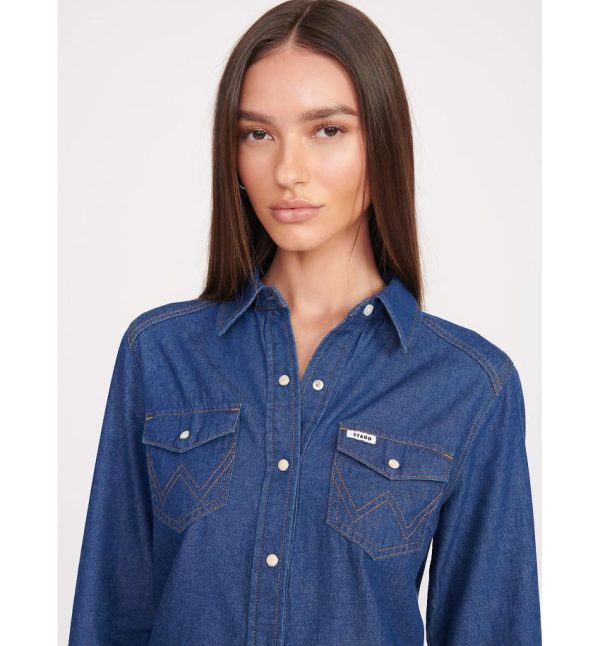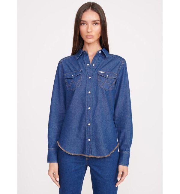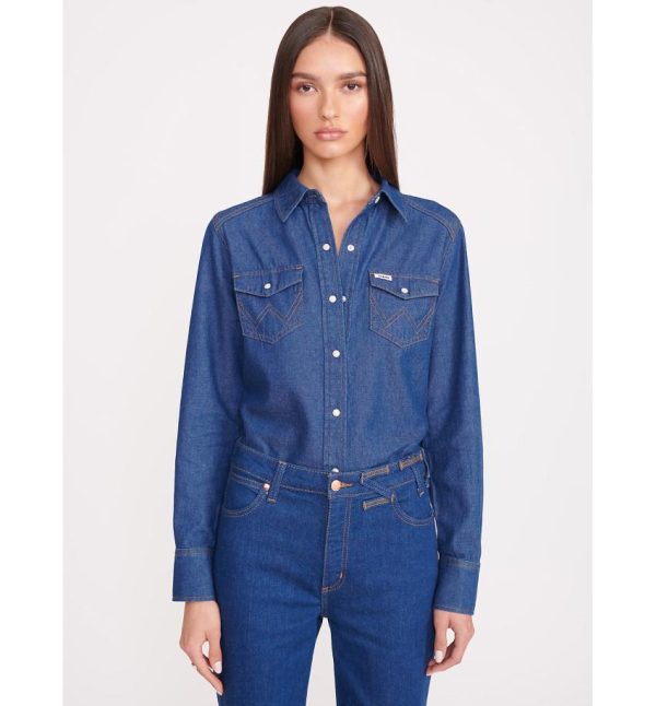 The Fitted Western Shirt is a classic shirt crafted in denim chambray. The style features front snap closures and chest pockets.