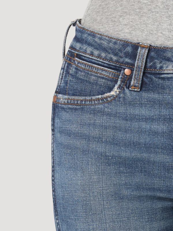If you’re the type to go big or go home, the Wrangler Retro® Premium trumpet flare is made just for you. With a dramatic, flared leg opening, the trumpet flare is designed to help your outfits stand out and get you noticed everywhere you go. This trumpet flare is crafted with natural fibers, including hemp and recycled cotton, and developed using sustainable finishing techniques in factories that meet rigorous health and safety standards. Every premium jean silhouette offers plenty of feel-good features—in addition to its earth-friendly impact, the trumpet flare jeans come with a hip-hugging high rise and contoured waist to help you look your best. The close fit extends through the thigh and quickly releases at the knee to an electrifying bell-bottom opening. It’s a silhouette that has taken the Western world by storm with its striking look. Pair it with a graphic Wrangler tee or an eye-catching fringed shirt for a show-stopping outfit.