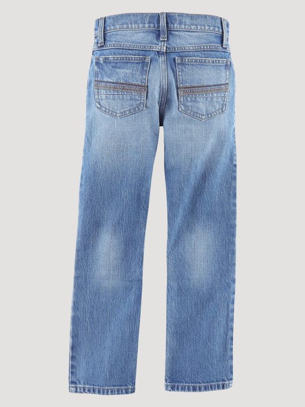 For a look that is always authentic, these straight leg jeans are made of our signature denim and have a cut that easily slides over his favorite pair of cowboy boots. With a slim fit in the seat, low rise, and an adjust-to-fit waistband, these jeans will grow along with him and look great every step of the way.