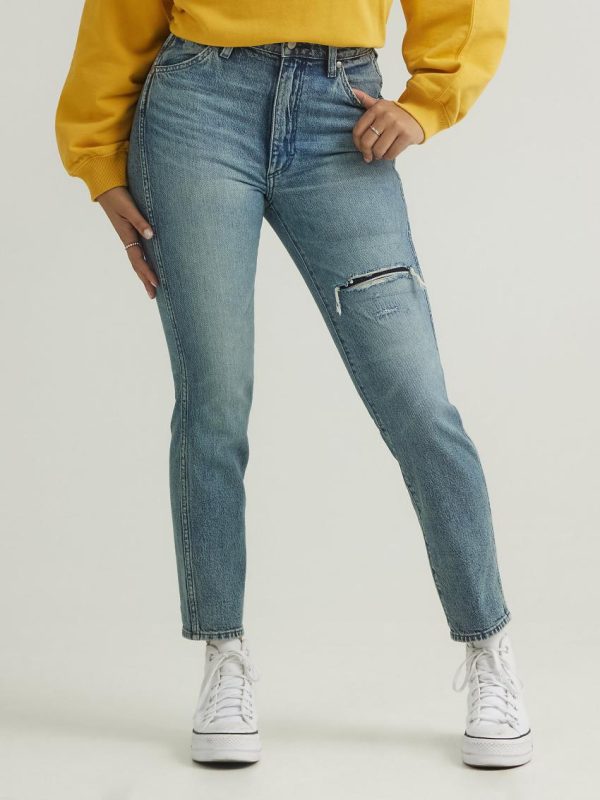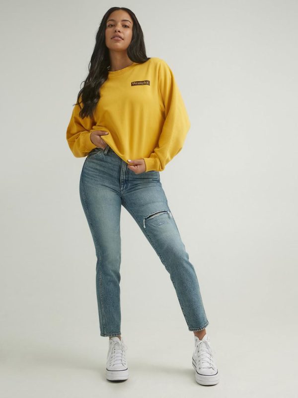 New to the Wrangler® Heritage collection, our women’s Walker jean combines the straight silhouette you love with a slightly tapered ankle for a ’90s-inspired look and feel. This high-rise slim jean is crafted from cotton with just a subtle amount of stretch for all-day comfort. All the iconic features are there, including our five-pocket styling, the ‘W’ stitching, a rope logo patch, and branded hardware for the finishing touch. This retro-inspired jean gets its signature wash from our latest innovation in sustainability, Earthwash, which uses less energy and water than traditional denim washing processes. By day, you can wear the Walker jean with a graphic tee and a pair of sneakers. By night, you can dress it up with a boho blouse and your favorite heels or boots. The possibilities are limitless with this cropped slim jean.