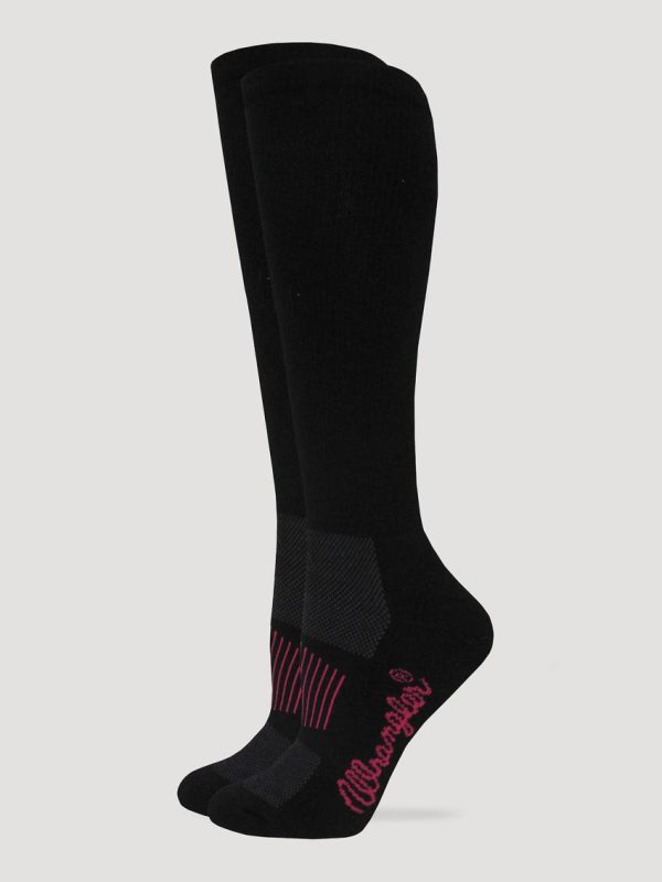 This sock will keep you comfortable throughout the day with added cushioning at the sole, arch support, stay up leg and top feature, and polyester construction to help wick moisture. Size M fits women’s shoe size 6-9