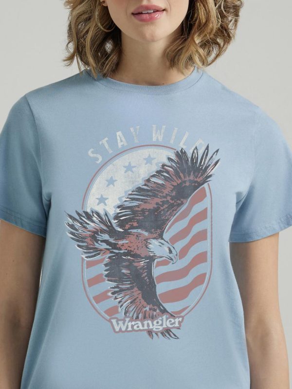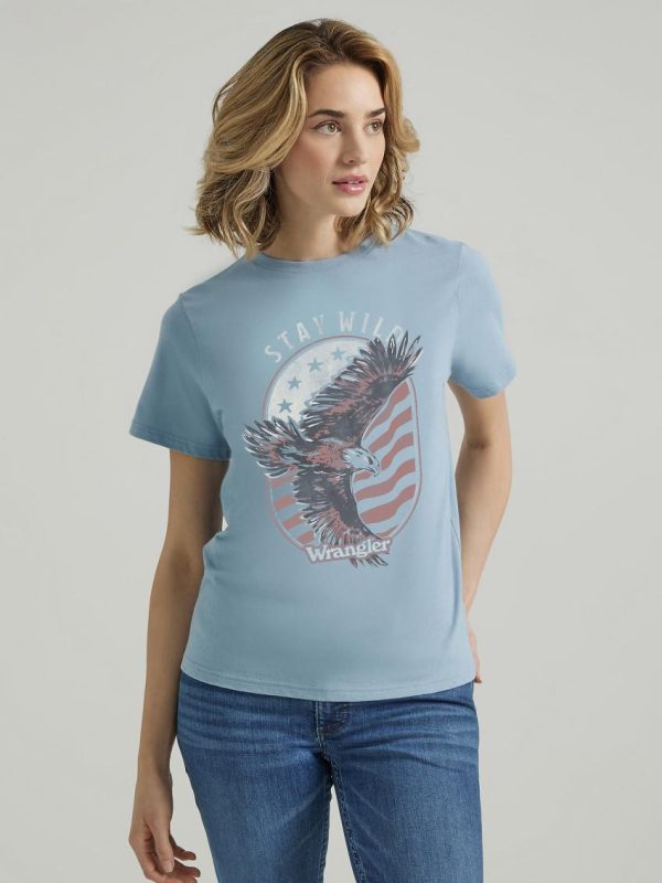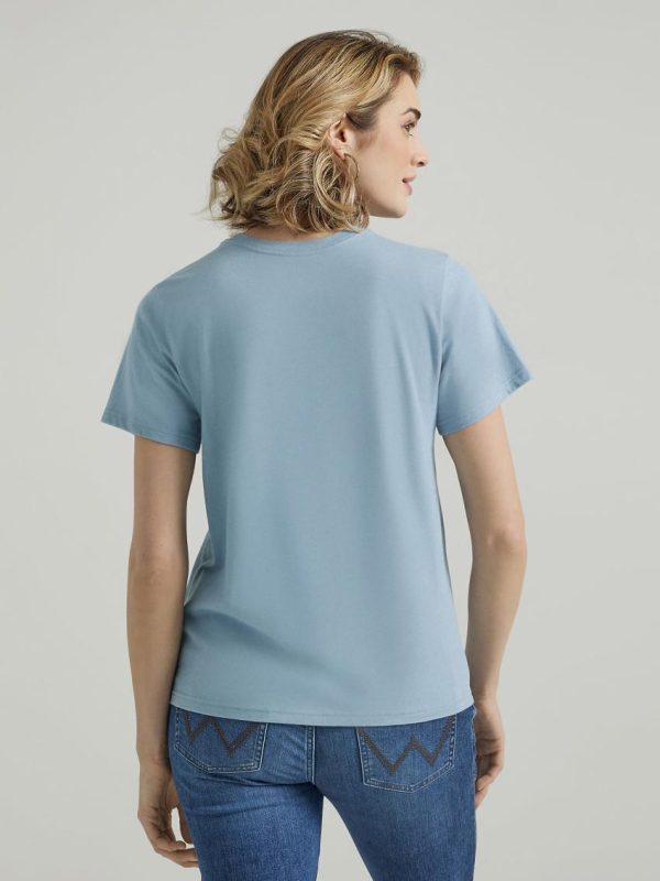Infuse some wanderlust into your everyday look with our Women’s Wrangler Retro® Western Graphic Regular Fit Tee. The Wild West reigns supreme in this t-shirt’s graphic print and the Wrangler® script logo adds a touch of authenticity. This classic crewneck is crafted from a comfortable cotton blend you can easily wear all year long.