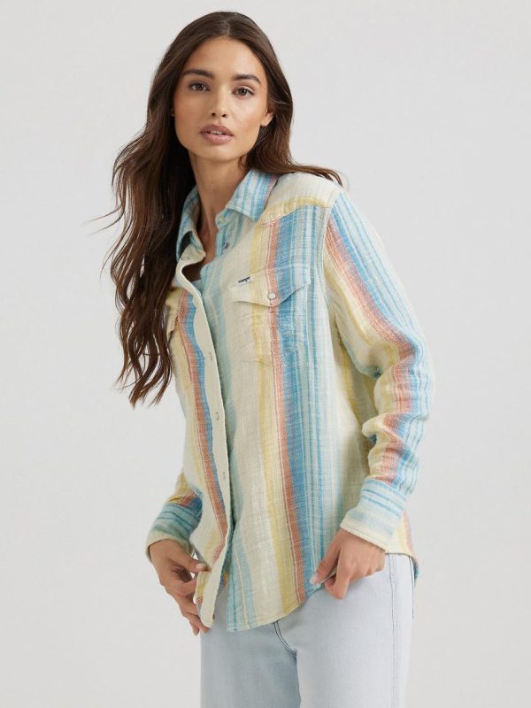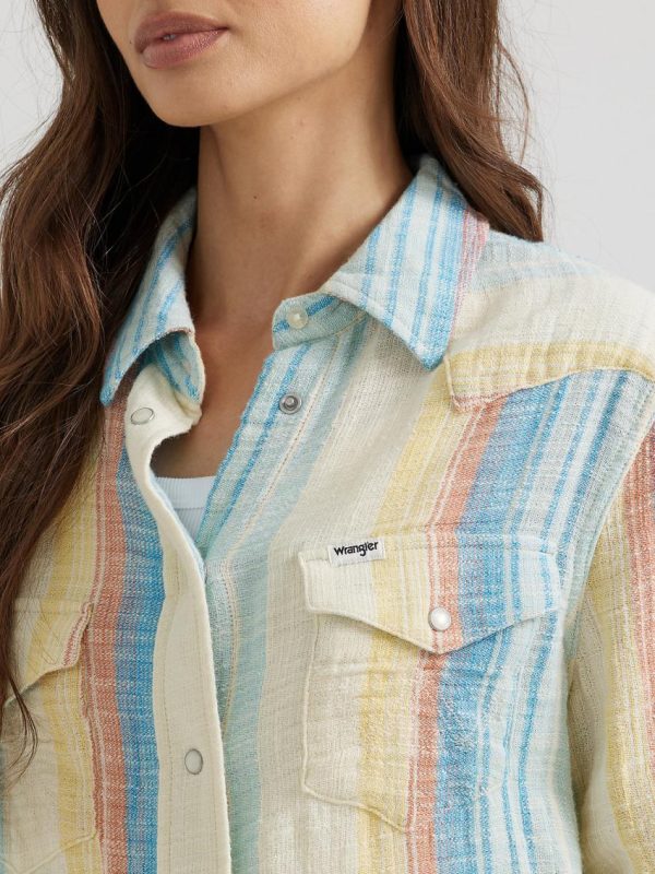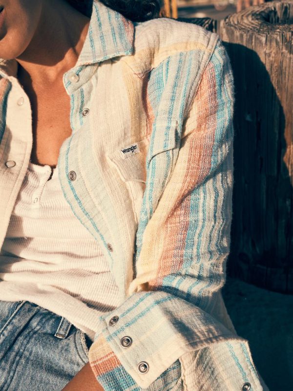 From its pearled buttons to its versatile feel, the Wrangler® Western Shirt has long been a favorite—and for good reason. In this modern iteration, it’s bringing a little extra fun to the classic look in the form of sherbet-colored stripes. Made from 100% cotton, it’s a unique piece that only gets better with every wear.