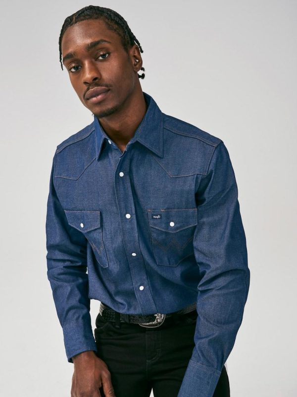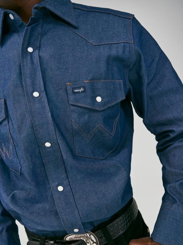 Cowboy Cut® Work Western Rigid Denim Long Sleeve Shirt Rigid Indigo | Men Wrangler Western Snaps