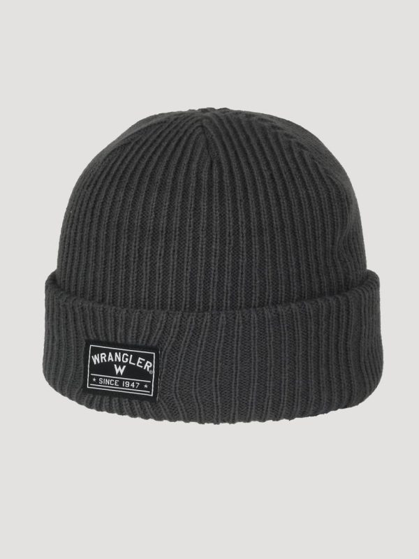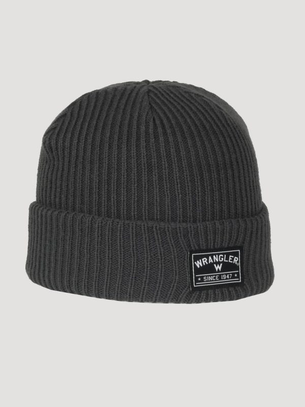 Wrangler Logo Beanie – Heather Grey Ribbed Knit Hat for Men & Women