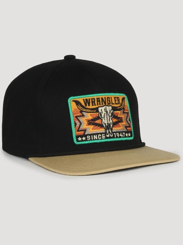 Wrangler Men’s Black Steerhead Baseball Cap – Structured Cotton Twill Hat with Snap Closure