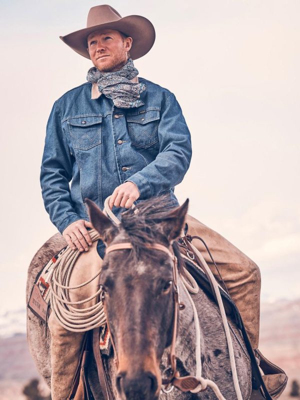Wrangler Men’s Blanket-Lined Denim Jacket with Corduroy Collar – Prewashed Indigo Western Wear