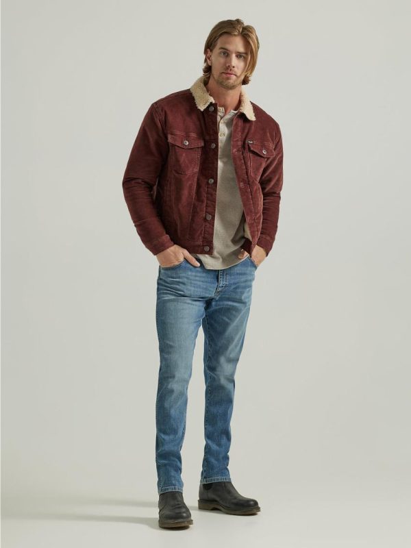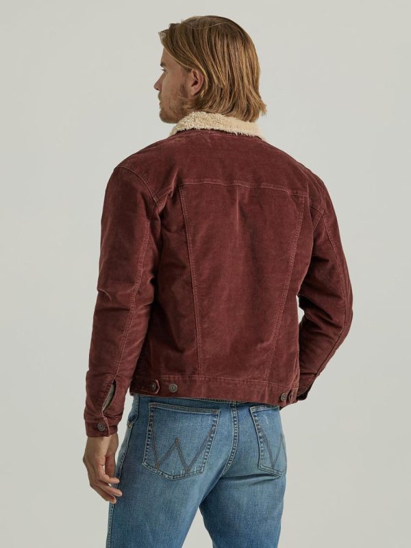 Sherpa Lined Corduroy Trucker Jacket Bitter Chocolate | Men Wrangler Sherpa Jackets