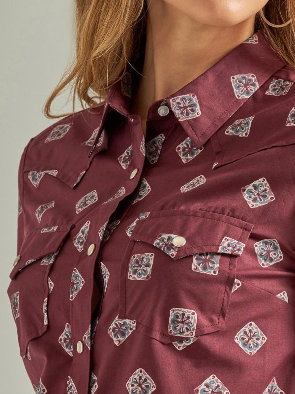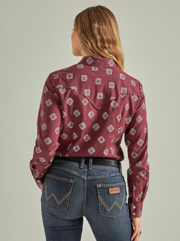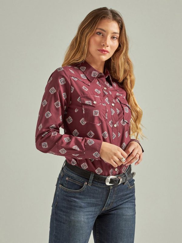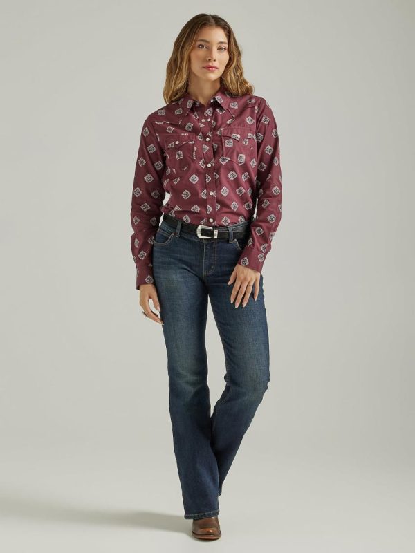 Essential Long Sleeve Print Western Snap Shirt Port Royale | Women Wrangler Snaps & Button Downs