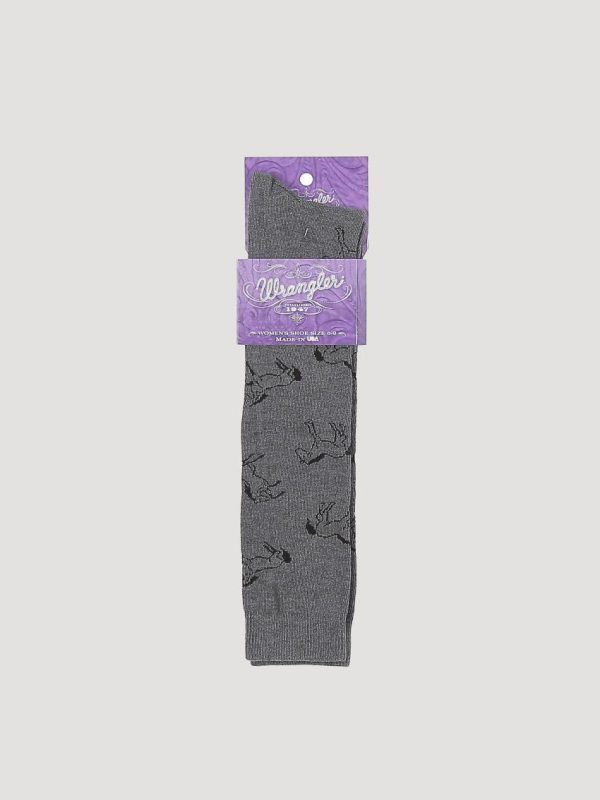 Wrangler Women’s Horse Print Boot Socks – Moisture-Wicking Charcoal Crew Socks