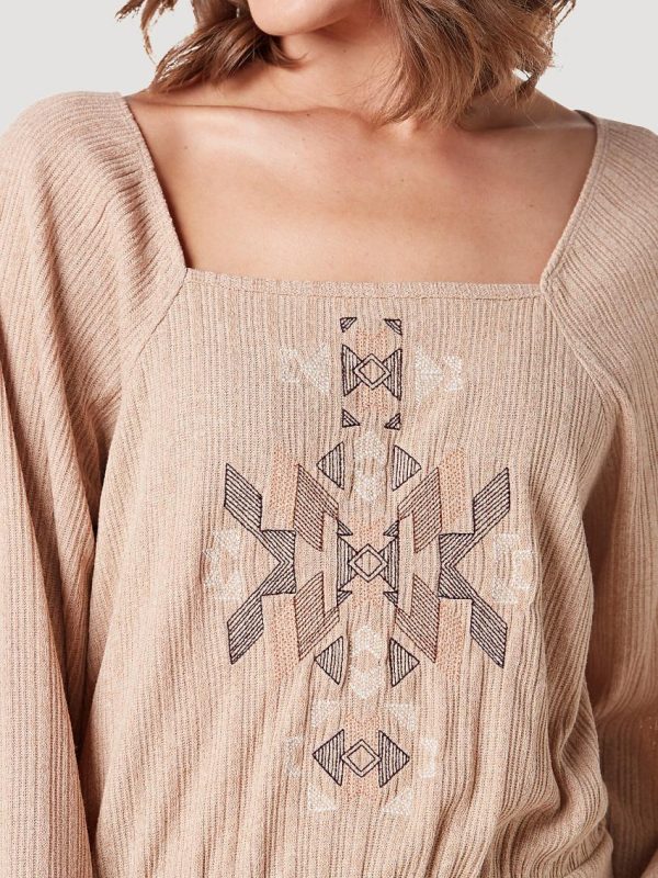 Embroidered Square Neck Blouse Sand | Women Wrangler Blouses, Tops & Tunics