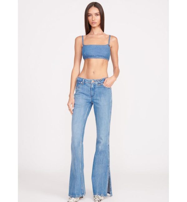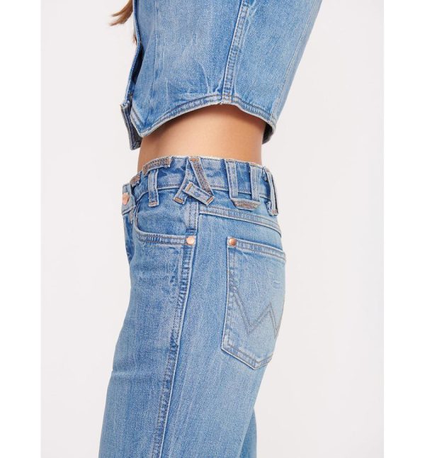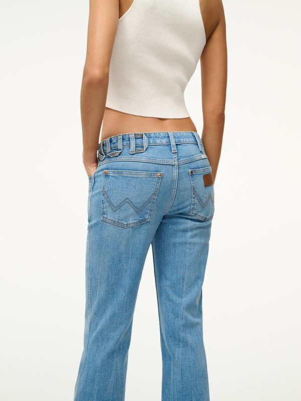 Wrangler Women’s STAUD The Bikini Jean – Mid Blue Low-Rise Flared Leg Western Denim