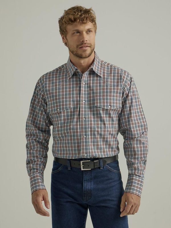 Create the sharp, crisp look you want without touching an iron. Combining the Western-style you want with the care-free maintenance you deserve, this wrinkle-resistant snap shirt from Wrangler® is a clear choice for the busy cowboy. This classic Western snap shirt comes with all the iconic features you’ve come to appreciate, including a spread collar, pointed yokes, two snap flap pockets, and a pencil slot. Best of all, this long sleeve shirt is made of a comfortable cotton blend with a little bit of stretch, stain release, and a wrinkle-free finish. Wear this wrinkle resist snap shirt with a Wrangler jean for a look that gets you out the door at a moment’s notice.